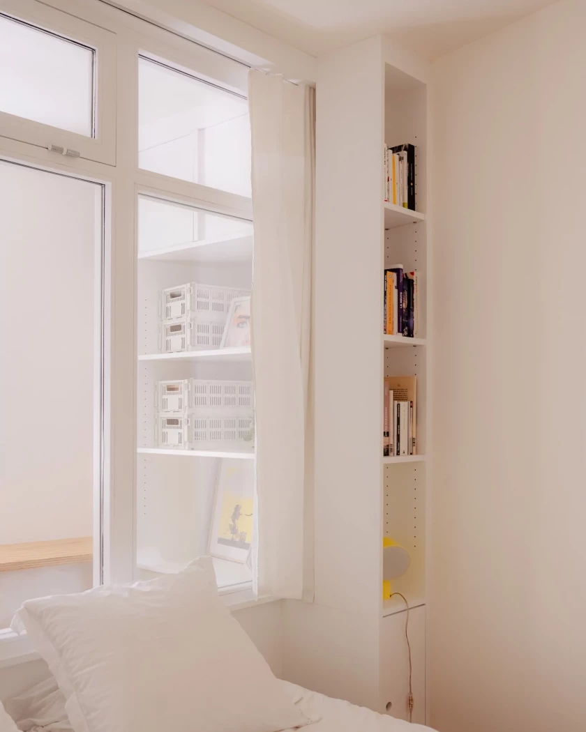 Un couple et leur fils de 9 ans vivent à l'étroit dans un petit appartement du centre-ville de Rennes. La typologie en enfilade de leur logement les a contraint il y a quelques années à cloisonner une chambre pour en faire deux, privant ainsi la seconde de ventilation naturelle.