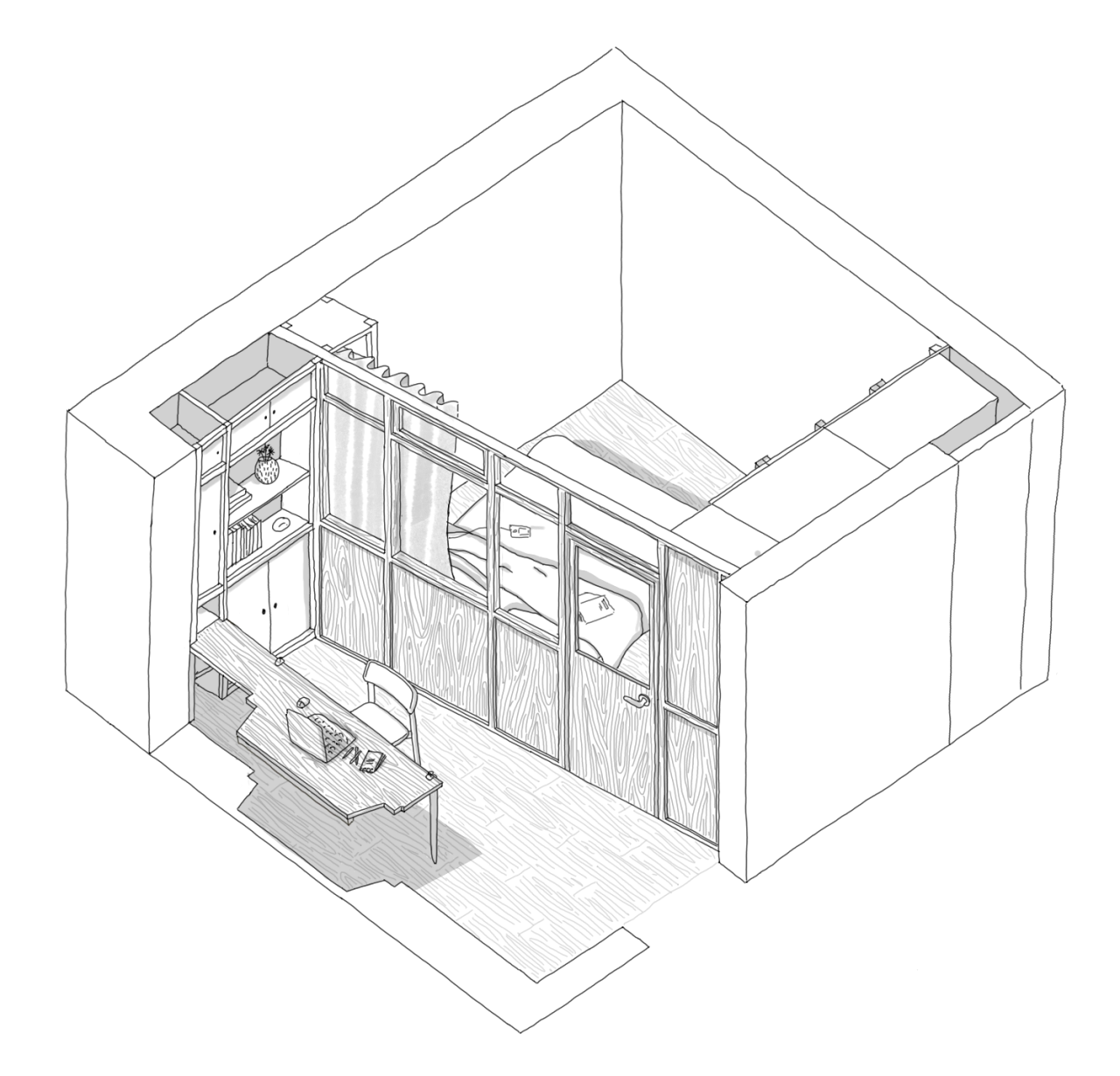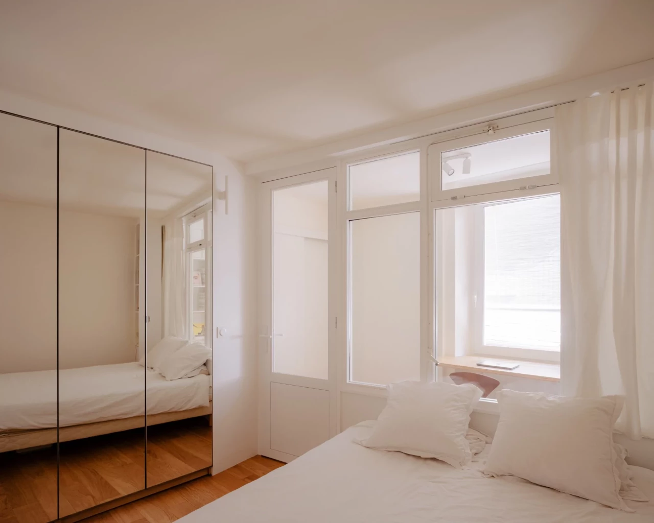 Un couple et leur fils de 9 ans vivent à l'étroit dans un petit appartement du centre-ville de Rennes. La typologie en enfilade de leur logement les a contraint il y a quelques années à cloisonner une chambre pour en faire deux, privant ainsi la seconde de ventilation naturelle.